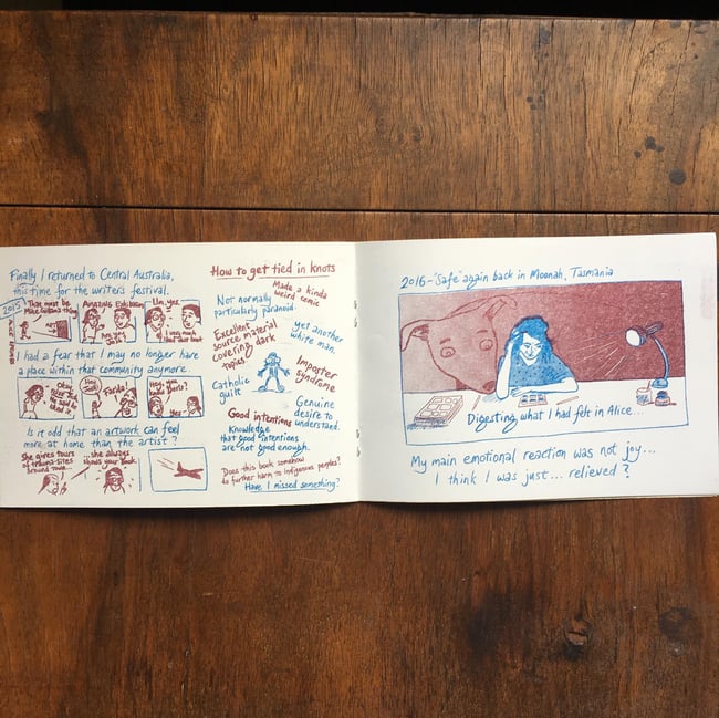 Beautifully crafted and risographed mini-comic written by Joshua Santospirito about the emotional side of creating his popular graphic novel adaption of 'The Long Weekend in Alice Springs'. Made to mark the 5th birthday of The Long Weekend.